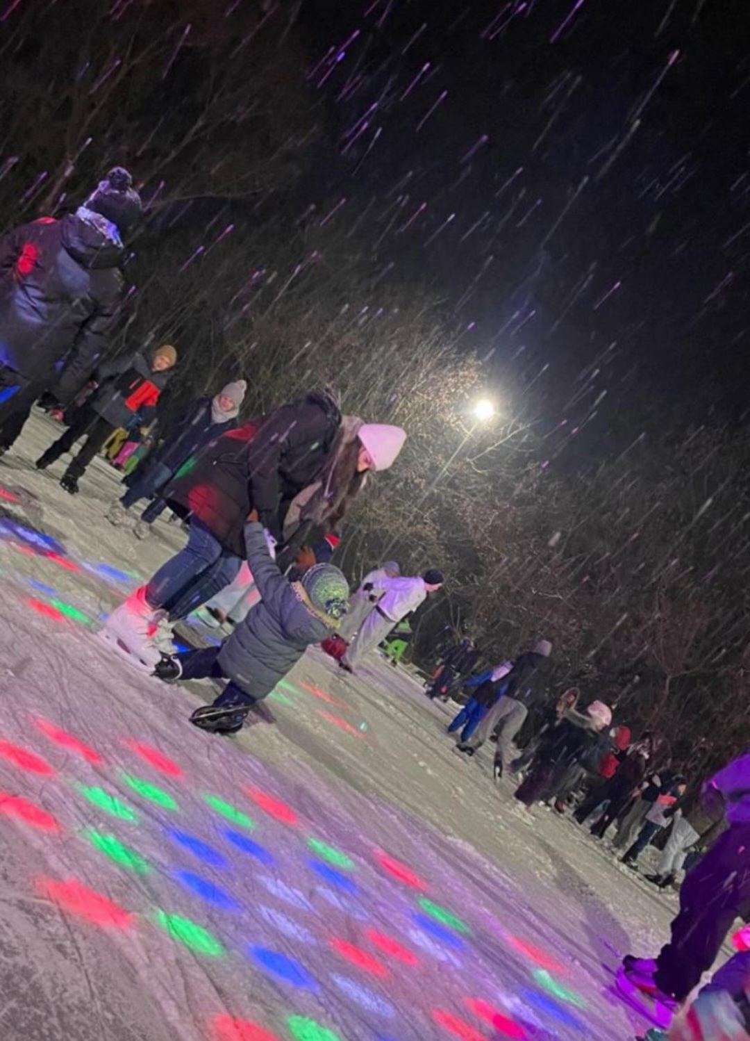 Bei Musik und buntem Discolicht drehten viele kleine und große Eisläuferinnen und Eisläufer ihre Runden.